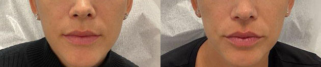 Noticeably decreased nasolabial folds and more defined jawline. This patient had one SkinTyte treatment to the face and the photos shown two months apart.
